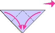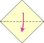 | 1 Color facing up will be color of the nest. Fold the top corner to the bottom. | 2 Fold points down to bottom point. | 3 With your finger on the top point, fold loose flaps outward as shown. | 4 Fold singer layer up. | ||
