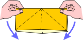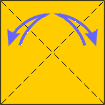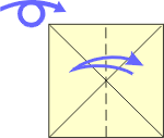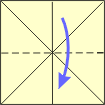 | 1 Fold into a triangle. Unfold. Fold other triangle. | 2 After turning over, fold rectangle . Unfold. | 3 Fold other rectangle. | 4 Push down to form square. Look at next step. | ||