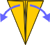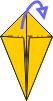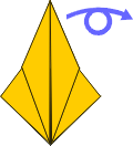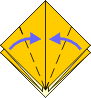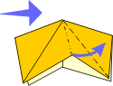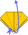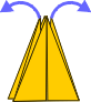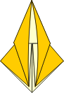 | 5 Like this. | 6 Preliminary base. Fold all layers inward like a kite. | 7 Mountain fold top triangle. | 8 Open out side layers. | ||