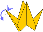 Pinch at the circle with one hand. Bend wings forward