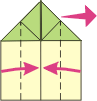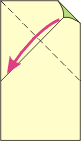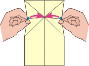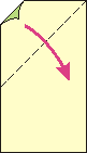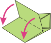 | 1Put the card on the table with the short edges at the top and bottom. Fold down the left top corner, as shown. | 2 Unfold. | 3 Fold down the right top corner, as shown. | 4 Unfold. | ||