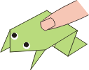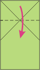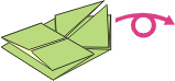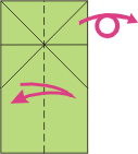 14 Fold the bottom up to meet the top. | 15 Fold the top layer only, down to meet the bottom. Do not press completely flat. | 16 It looks like this. Turn over. | ||