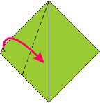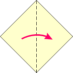 Put a square of paper on the table so it looks like a diamond. Fold the left point to meet the right point. |