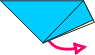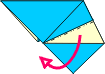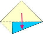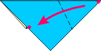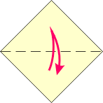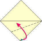 | 1 Valley fold and unfold. | 2 Fold right lower edge to meet center crease. | 3 Fold top down using fold from Step 2. | 4 Fold point to point.. | ||
