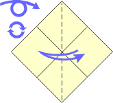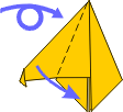4 Fold the top point down to the bottom point. | ||