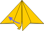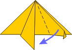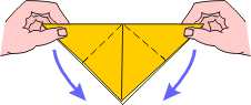 | 5 Pinch the triangle between your fingers and push downward toward the middle. | 6 It looks like this. | 7 Using the top flaps only, bring the folded edges downward to meet the center crease. | |||